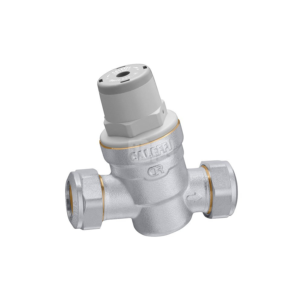 Regulator ciśnienia ze złączkami zaciskowymi wersja skośna Zgodny z PN EN 1567. Wkład i filtr wymienny. Dla wysokich temperatur. Przyłącze: Ø 22. Maksymalne ciśnienie wlotowe: 16 bar. Zakres temperatury medium: 2–80 °C. Zakres regulowanego ciśnienia: 1–5,5 bar. Wykończenie: chromowane. Materiał: stop mosiądzu odporny na odcynkowanie.
