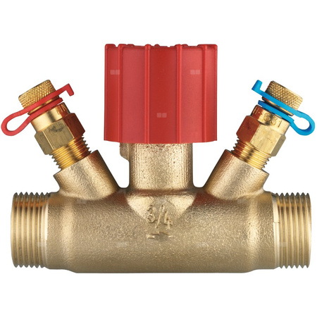 Zawór regulacyjny, figura prosta z zaworami pomiarowymi, gwint zewnętrznym G. Korpus wykonany z mosiądzu odpornego na wypłukiwanie się cynku, do hydraulicznego równoważenia instalacji chłodniczych (np. fancoile).