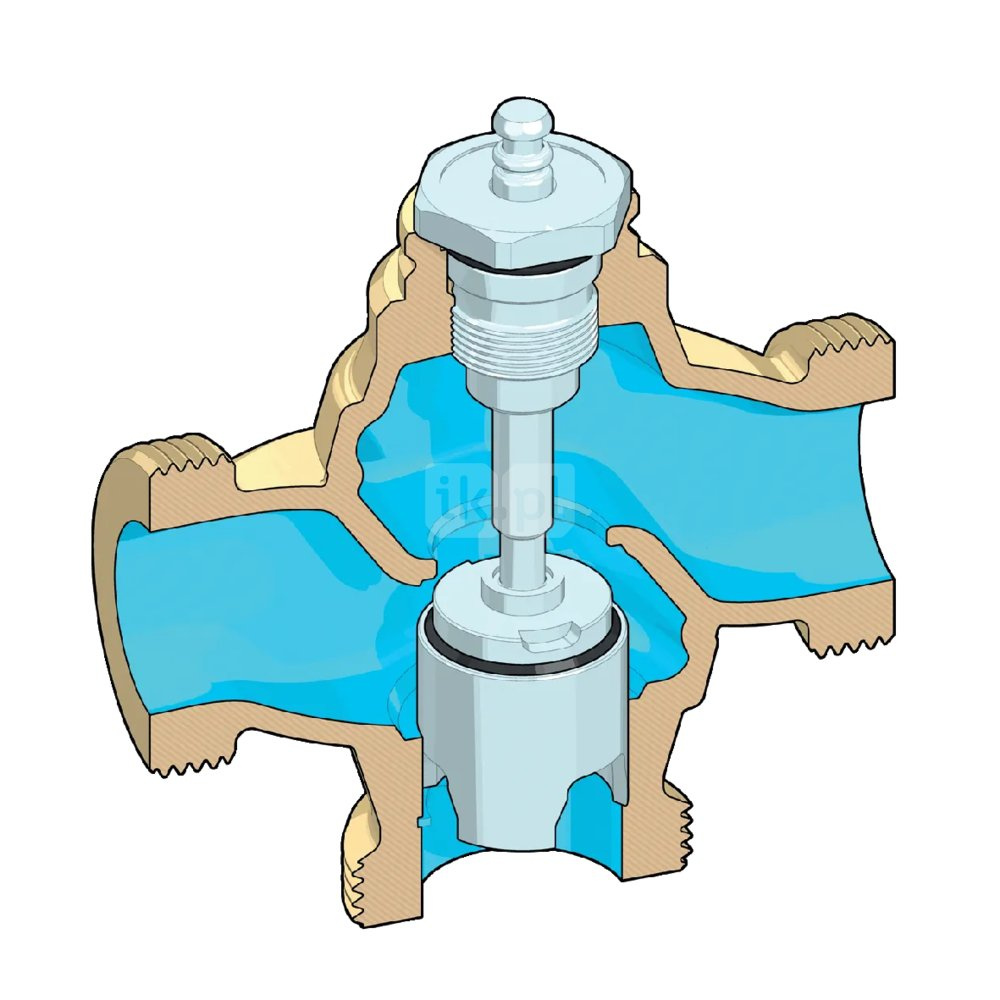 Dwudrożny zawór regulacyjny, gwintowany Charakterystyka stałoprocentowa. Przyłącze: Rp 1" (EN 10226-1) GW, złączka. Maksymalne ciśnienie pracy: 16 bar. Zakres temperatury medium: 0–100 °C. PN (Ciśnienie nominalne): PN 16. DN: DN 25 (korpus). Kv: 10 m³/h.