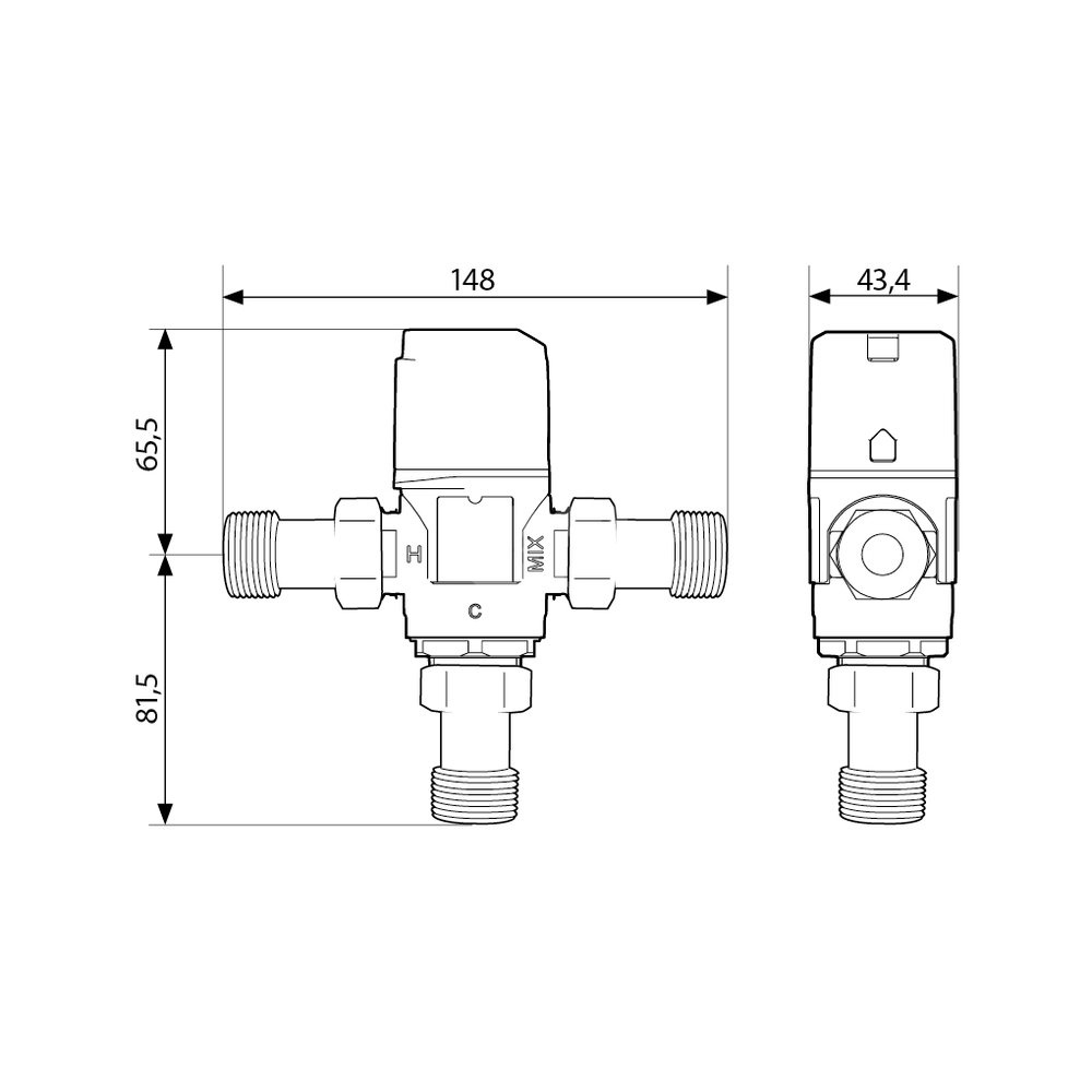 Zawór regulacyjny termostatyczny do wody ciepłej AFRISO ATM 361 ze śrubunkami mosiądz GZ 1'', DN 20, zakres temp. 20-43'C, Kvs 1.6 m3/h, maksymalna temperatura 90'C, maksymane ciśnienie 10 bar