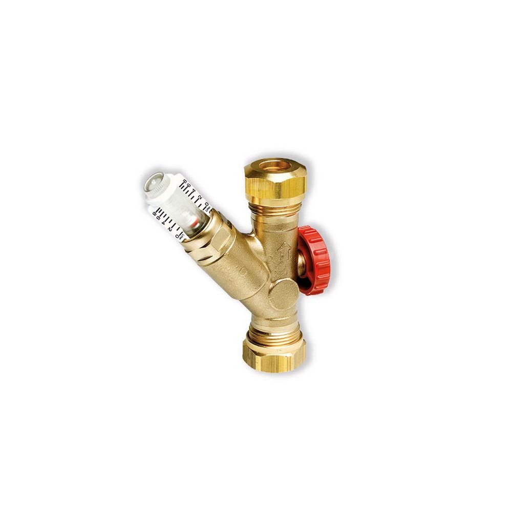 Zawór równoważący WattFlow BP z wbudowanym rotametrem (przyłącze – złączki zaciskowe do rury miedzianej). Regulacja przepływu ze wskaźnikiem bieżącej wartości przepływu. Szeroki zakres pomiaru przepływu. Nie ma potrzeby stosowania diagramów i innych urządzeń pomiarowych. Dowolna pozycja montowania. Krótka długość zabudowy. Obudowa – mosiądz, skala – tworzywo sztuczne odporne na uderzenia.