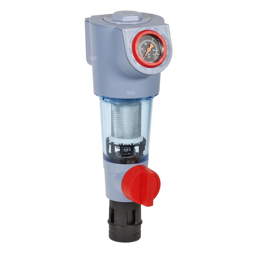 • Opatentowany system płukania wstecznego pozwala na szybkie oczyszczenie filtra niewielką ilością wody • Specjalny pierścień nastawczy pokazuje kiedy należy przeprowadzić kolejne płukanie