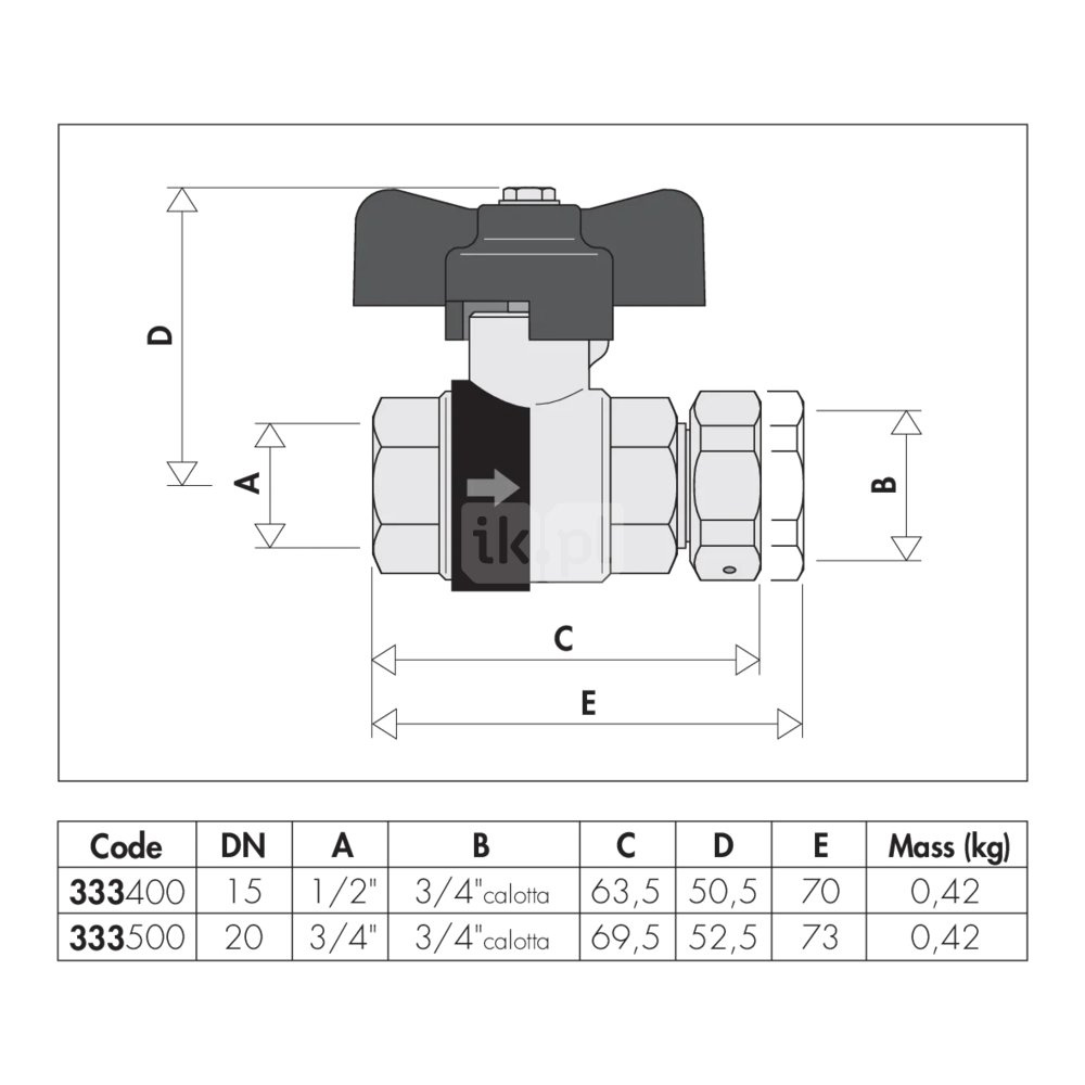 BALLSTOP - Zawór kulowy z wbudowanym zaworem zwrotnym, przyłącze z gwintem wewnętrznym, nakrętka zabezpieczona przed manipulacją