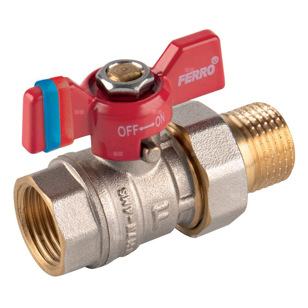 • nakrętno-wkrętny ze śrubunkiem • z dławikiem • uchwyt: metalowy motylek • materiał korpusu i kuli: mosiądz • materiał uszczelnień kuli i trzpienia: PTFE • ciśnienie nominalne: 20 bar (PN20) • maksymalna temperatura pracy: 100°C
