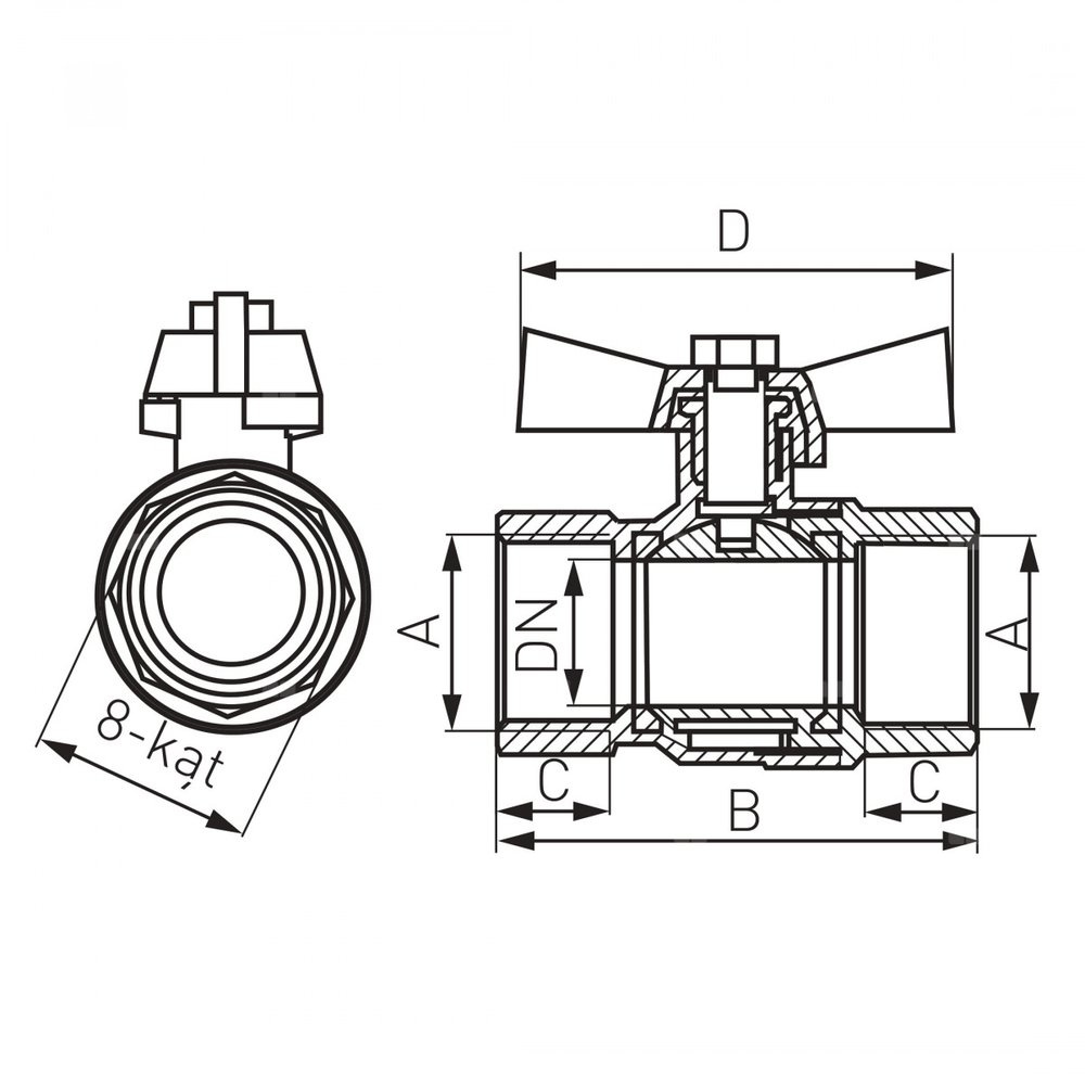 Zawór kulowy FERRO Herkules typ V17 1'' GW, uchwyt: motylek