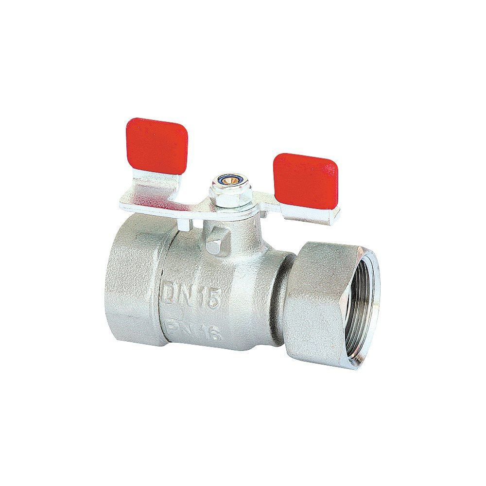 Zawór kulowy ze swobodna nakrętką, z dźwignią. Korpus z mosiądzu kutego wg DIN 17660, niklowany, uszczelnienia PTFE i NBR. Zakres temperatury medium -10 do 110 °C (woda 0 do 110 °C), do każdego rodzaju nieagresywnego medium jak woda, powietrze, olej opałowy i olej smarowy.