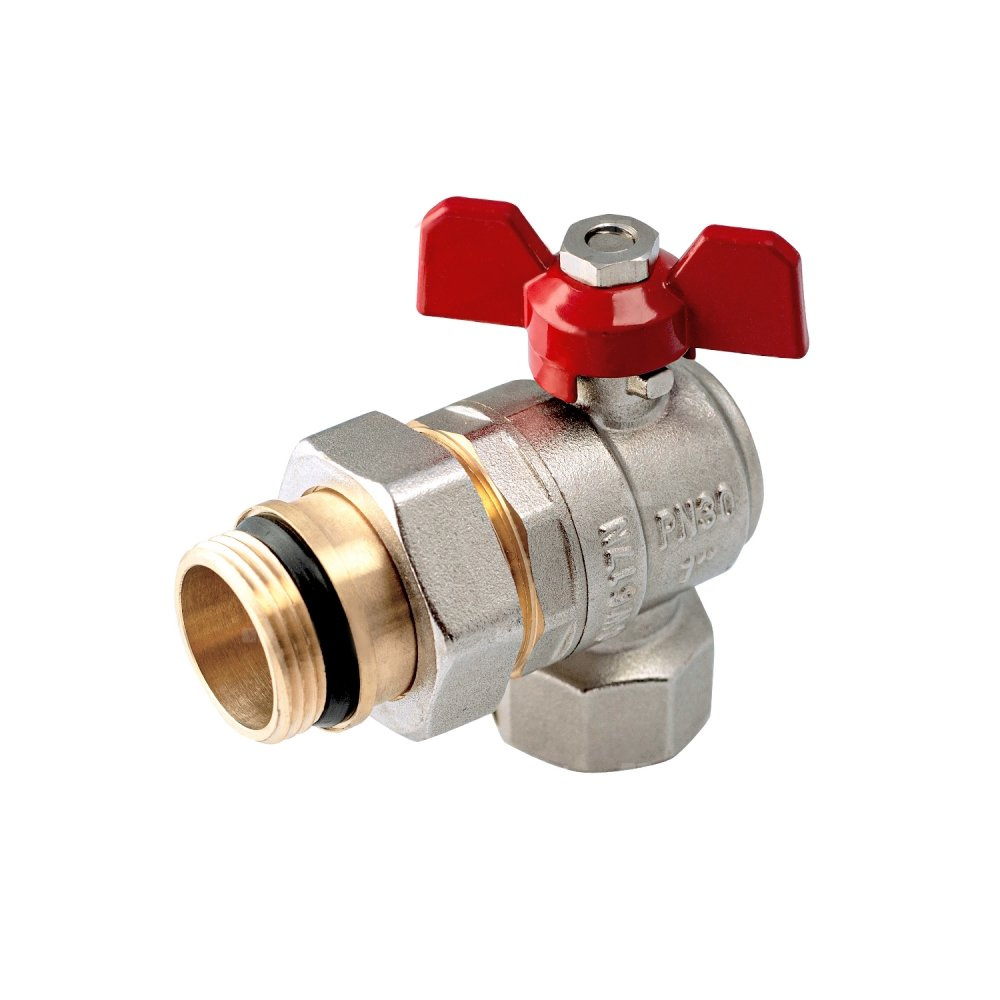 Zawór kulowy PERFEXIM PHA-010A mosiądz niklowany, PN30 1'' gz x gw kątowy, uchwyt: motylek (czerwony)