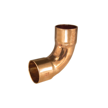 Łuk nyplowy 90° z miedzi, do wody posiada przyłącze zaprasowywane z oringiem EPDM i przyłącze nyplowe. Wystarczy przyłożyć nacisk za pomocą narzędzia do zaciskania, aby zacisnąć pierścień uszczelniający na rurze, zapewniając czyste, wodoszczelne uszczelnienie w ciągu kilku sekund bez płomienia, lutu lub topnika. Nadaje się do instalacji wody pitnej, ciepłej i zimnej wody, wody lodowej, sprężonego powietrza i próżni. Złączka umożliwia zmianę kierunku rurociągu o 90 stopni pomiędzy połączeniem zaprasowywanym a połączeniem, które można lutować lub zaprasowywać.