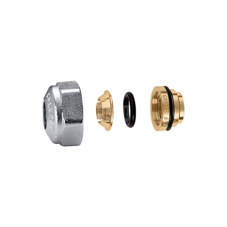 Złączka zaciskowa Z uszczelką O-ring. Przyłącze: 23 p.1,5, Podłączenie do złączek Caleffi. Przyłącze: Ø 14. Maksymalne ciśnienie pracy: 10 bar. Zakres temperatury medium: -25–120 °C. Wykończenie: chromowane. Materiał: mosiądz.
