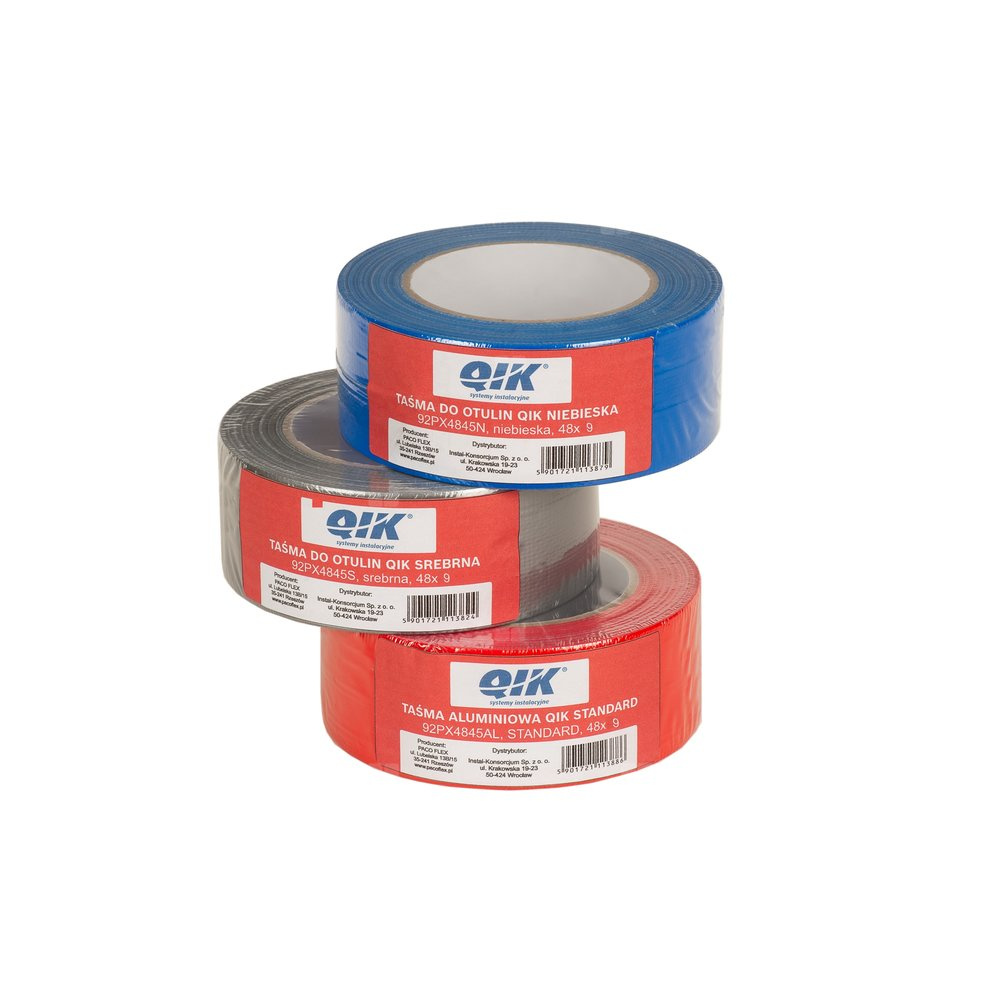 Taśmy techniczne QIK typu DUCT TAPE służą do łączenia i uszczelniania izolacji rur, przewodów wentylacyjnych i klimatyzacyjnych a także do prac naprawczych. Dostępne w różnych długościach i różnych kolorach. W wersji standardowej oraz wzmocnionej – PREMIUM.