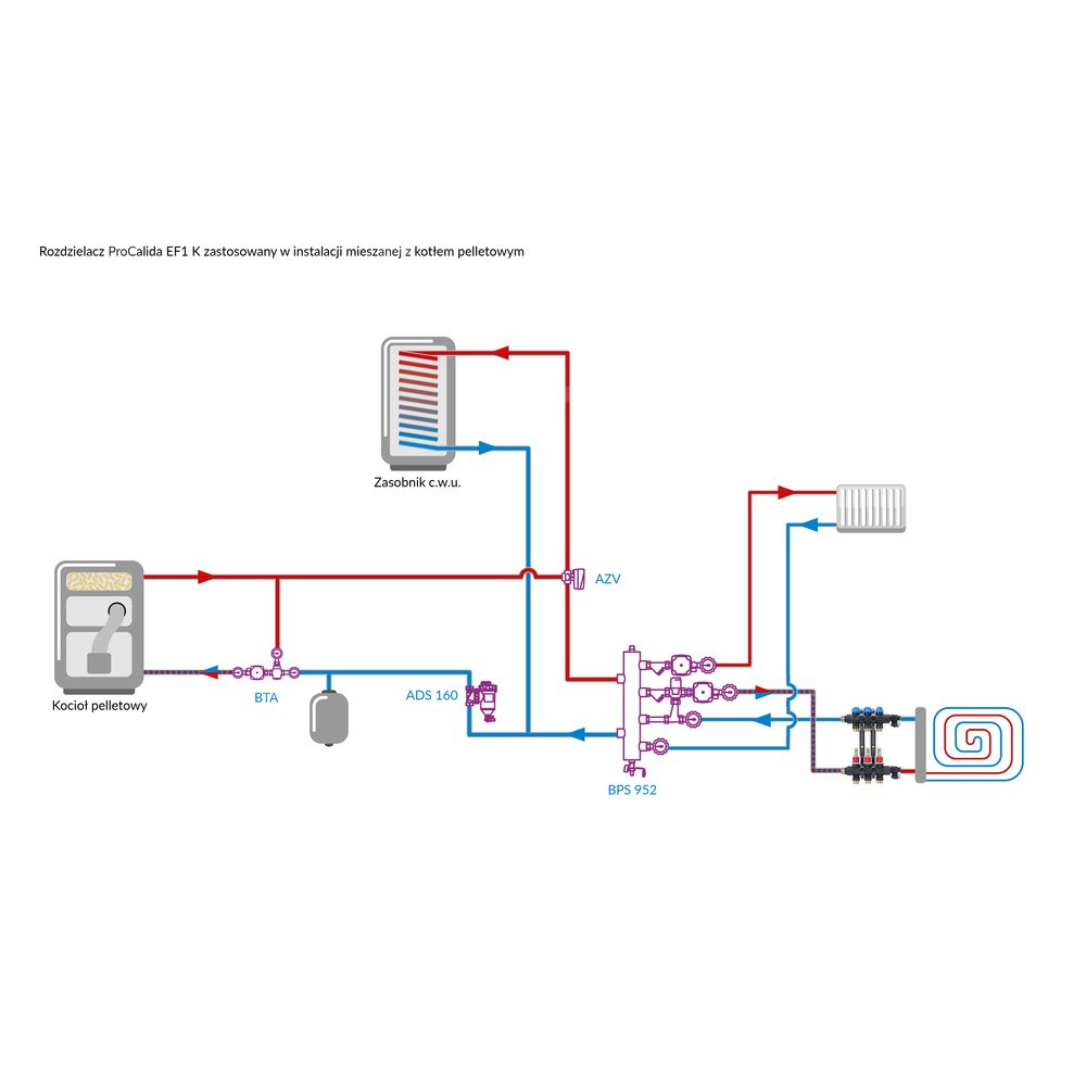 Rozdzielacze poliamidowe ProCalida EF1 K stosuje się w instalacjach ogrzewania lub chłodzenia płaszczyznowego. Montowane są głównie w szafkach umieszczonych w ścianach budynku, skąd rozprowadzają ciepło ze źródła do poszczególnych pętli instalacji płaszczyznowej. Możliwy jest również montaż pod stropem w instalacjach sufitowych. Z ich pomocą reguluje się ilość ciepła kierowaną do konkretnych pomieszczeń, napełnia, opróżnia oraz odpowietrza instalacje płaszczyznowe. Połączone z systemami sterowania FloorControl lub CosiTherm i siłownikami termoelektrycznymi TSA zapewniają stale komfortową temperaturę w każdym z pomieszczeń.
