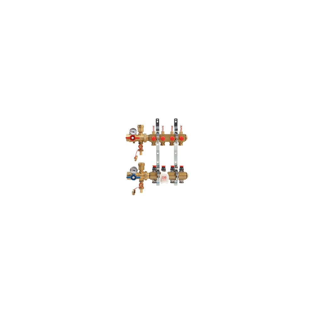 Rozdzielacz do ogrzewania podłogowego GIACOMINI R553FKDB 6-obieg. mosiądz 1'' x gzm 18 + przepływomierz + termometr + zawór napełn/spust + odpowietrznik + zawór przy przyłączu
