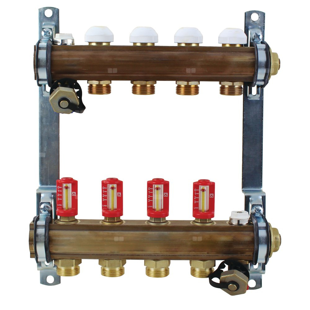 Rozdzielacz do ogrzewania podłogowego HERZ 3-obieg. mosiądz GW 1'' x GZ 3/4'' + przepływomierz + zawór napełn/spust + odpowietrznik