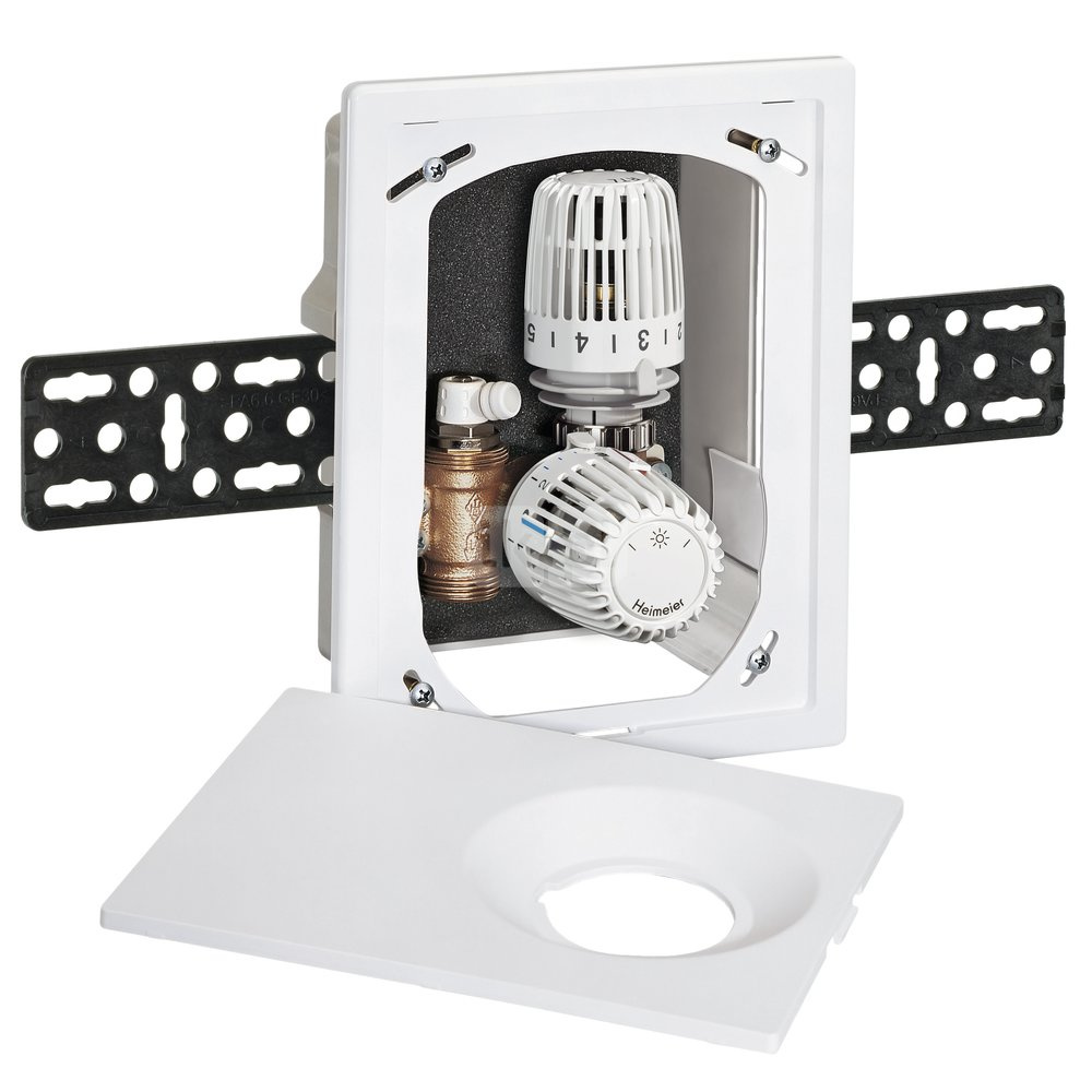 Multibox K-RTL - z zaworem termostatycznym i ogranicznikiem powrotu (RTL), pokrywa oraz głowica termostatyczna K biała RAL 9016