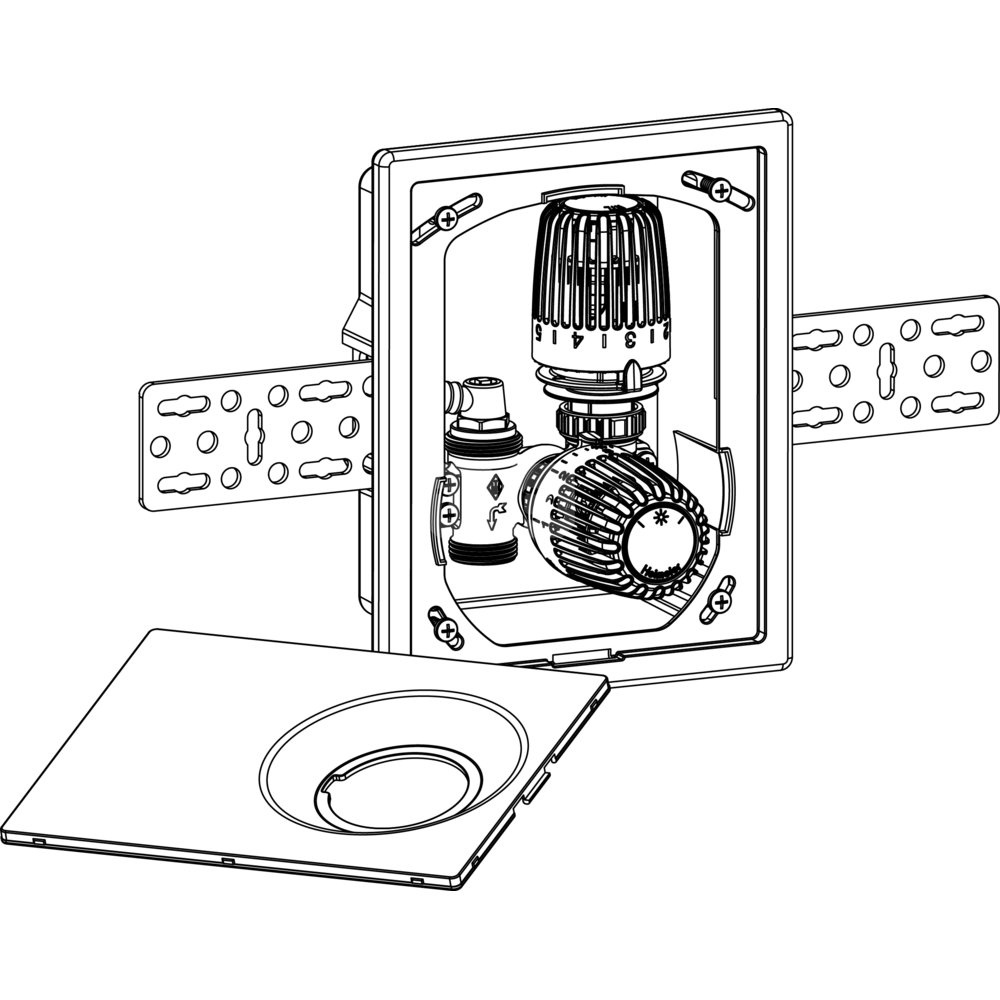 Multibox K-RTL - z zaworem termostatycznym i ogranicznikiem powrotu (RTL), pokrywa oraz głowica termostatyczna K chromowana