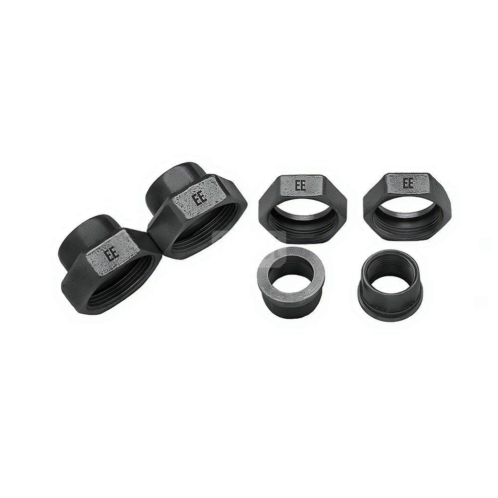 Łączniki z żeliwa ciągliwego białego marki EE znajdują zastosowanie w połączeniach rurowych gwintowanych, a w szczególności w sieciach instalacji wodociągowych, gazowych, parowych, centralnego ogrzewania, tryskaczowych itp. do przenoszenia cieczy i gazów nieagresywnych.