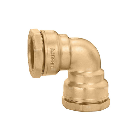 Kolanko Do rur polietylenowych. Przyłącze: Ø 63. Maksymalne ciśnienie pracy: 16 bar. Zakres temperatury medium: 0–40 °C. Materiał: mosiądz.