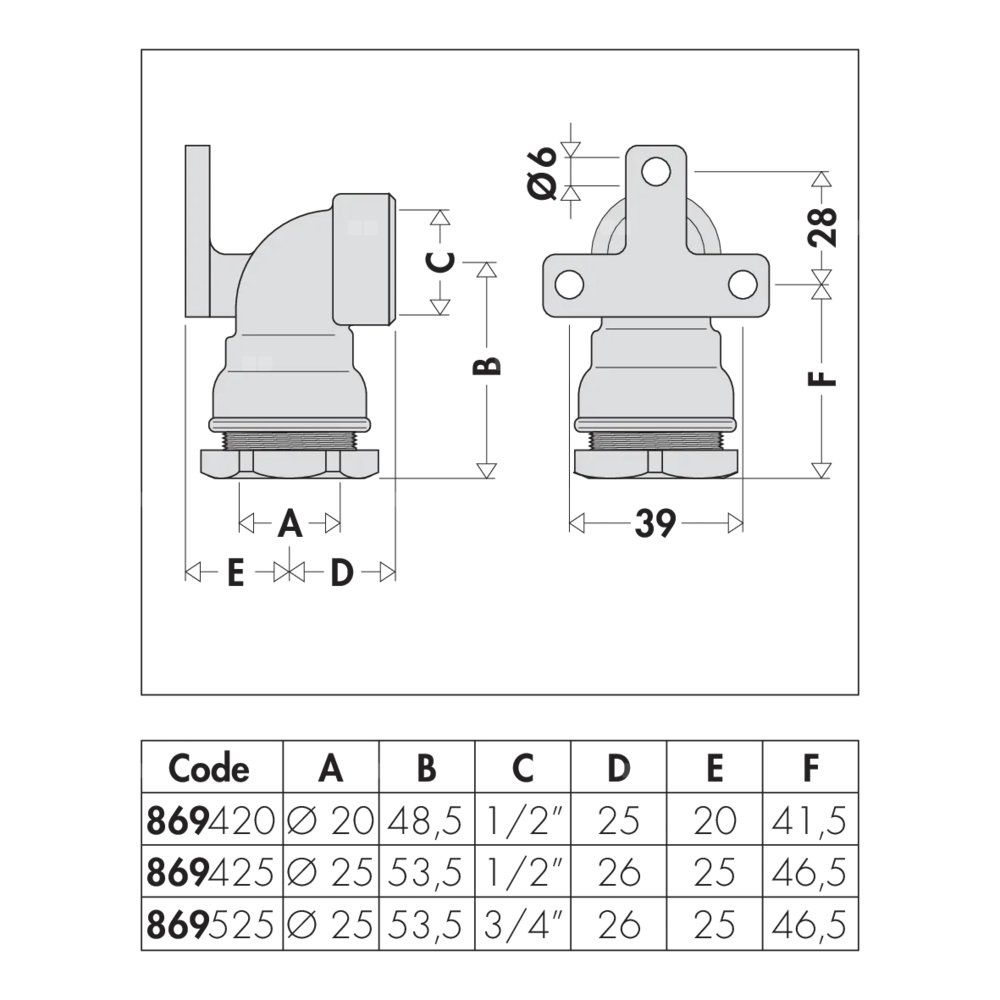 Kolanko z gwintem wewnętrznym do montażu na ścianie Do rur polietylenowych. Przyłącze: Ø 25, wlot. Przyłącze: Rp 1/2" (EN 10226-1) GW, wylot. Maksymalne ciśnienie pracy: 16 bar. Zakres temperatury medium: 0–40 °C. Materiał: mosiądz.