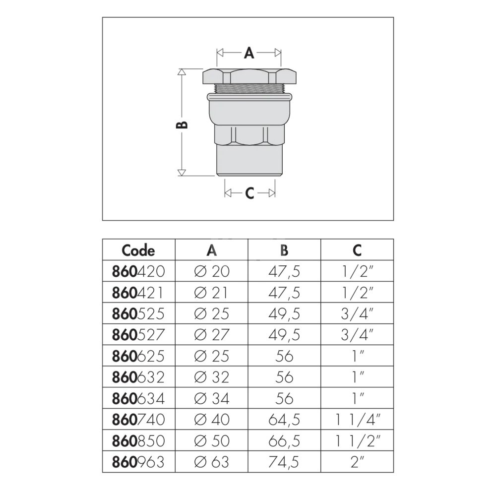 Złączka z gwintem wewnętrznym Do rur polietylenowych. Przyłącze: Ø 50, wlot. Przyłącze: Rp 1 1/2" (EN 10226-1) GW, wylot. Maksymalne ciśnienie pracy: 16 bar. Zakres temperatury medium: 0–40 °C. Materiał: mosiądz.