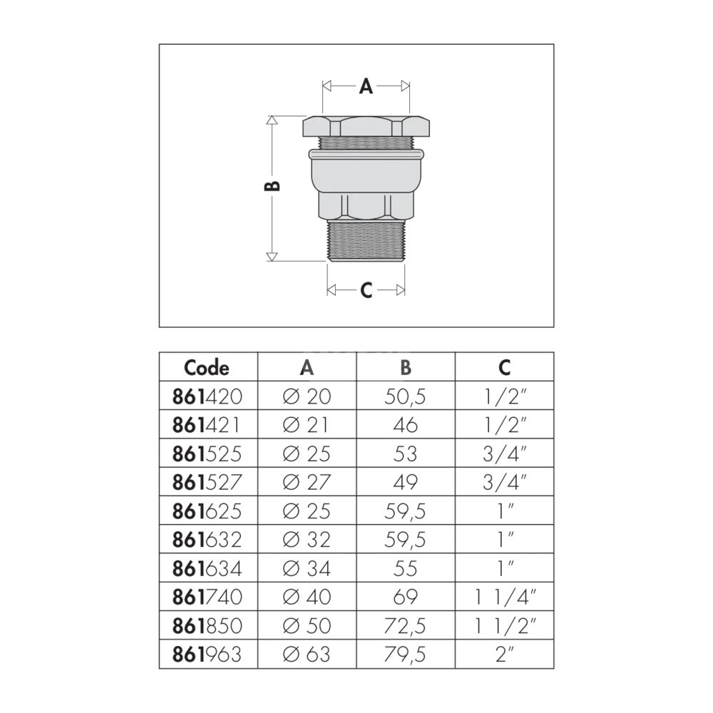 Złączka z gwintem zewnętrznym Do rur polietylenowych. Przyłącze: Ø 25, wlot. Przyłącze: R 1" (EN 10226-1) GZ, wylot. Maksymalne ciśnienie pracy: 16 bar. Zakres temperatury medium: 0–40 °C. Materiał: mosiądz.
