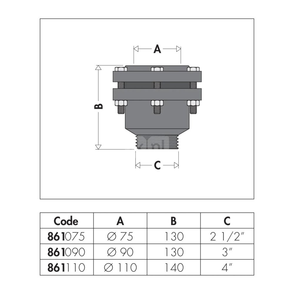 Złączka z gwintem zewnętrznym Śruby ze stali nierdzewnej. Do rur polietylenowych. Przyłącze: Ø 110, wlot. Przyłącze: R 4" (EN 10226-1) GZ, wylot. Maksymalne ciśnienie pracy: 10 bar. Zakres temperatury medium: 0–40 °C. Materiał: żeliwo.