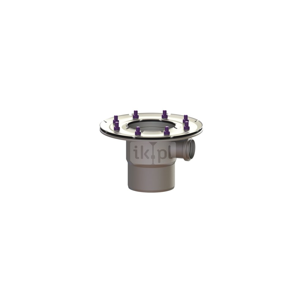 Przedłużka System 125 z dociskowym uszczelniającym ze stali nierdzewnej, bocznym dopływem z kielichem nakładanym DN 50/40 i uszczelką wargową. Szerokość kołnierza: 70 mm
