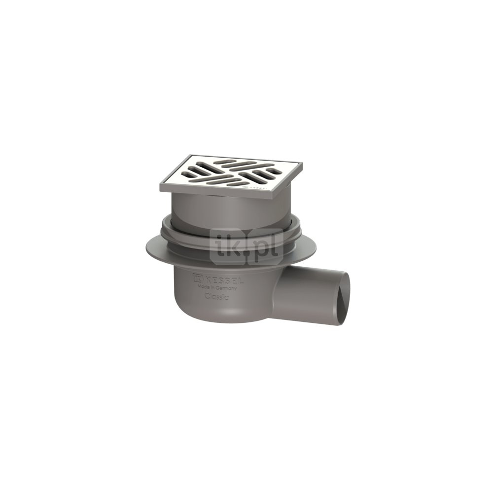 KESSEL Wpust łazienkowy Classic, długość 185 mm, wielkość nominalna (DN) 50, odwodnienie przez odpływ punktowy, syfonem w zestawie, typ pokrywy Kratka szczelinowa, pokrywa Stal nierdzewna 14301, kratka design, króciec boczny, wys. zamknięcia wodnego 50 mm