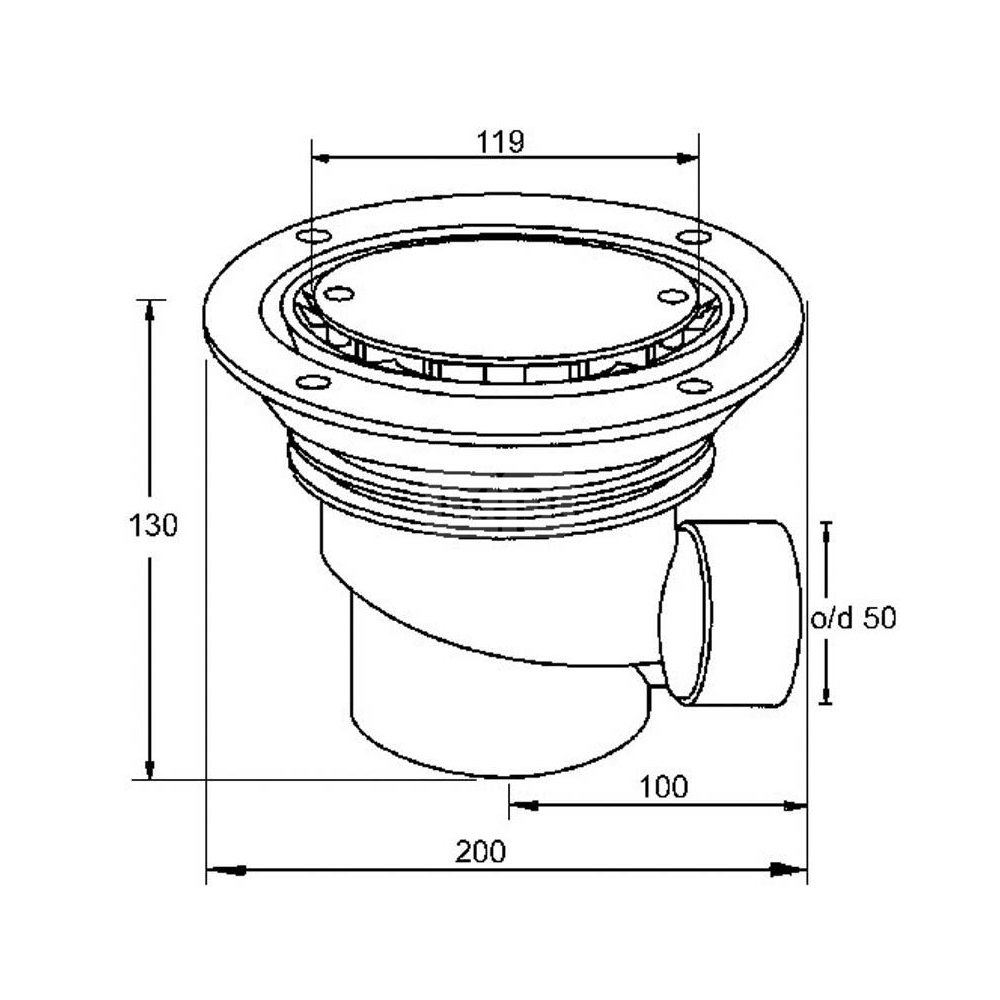 Wpust podłogowy wykonany z ABS z odpływem 50mm, czyszczony od góry z kratką ze stali nierdzewnej120mm