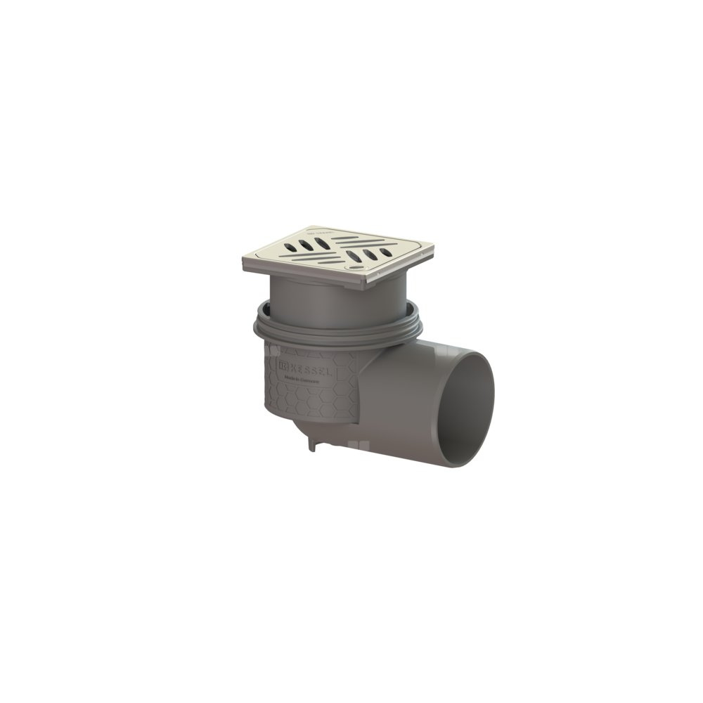 KESSEL Wpust podłog./strop. Practicus, dł. pokrywy 120 mm, typ uszczelnienia:, króciec boczny, wielkość nominalna (DN) 100, syfonem w zestawie, odwodnienie przez odpływ punktowy, typ pokrywy Kratka design, kratka design Kessel