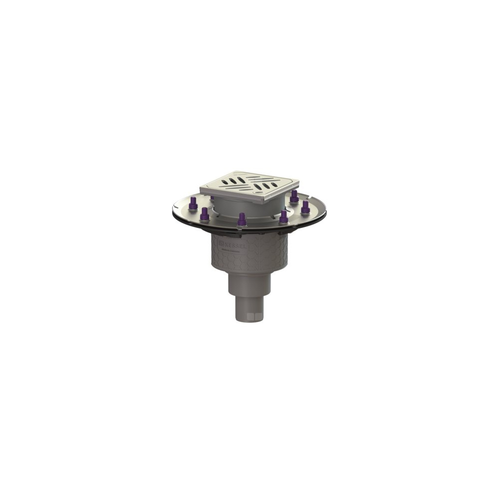 KESSEL Wpust obiek.Practicus doc.koł.usz, dł. pokrywy 120 mm, króciec pionowy, wielkość nominalna (DN) 50, syfonem w zestawie, typ pokrywy Kratka design, kratka design Kessel, uszczelnienie nasadzie przez Krawędź przyłączeniowa