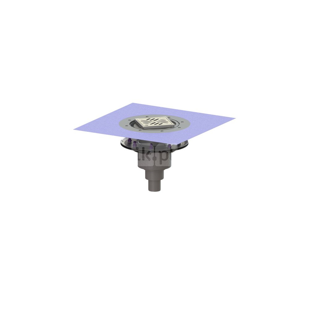 Wpust podłogowy/stropowy Practicus z tworzywa sztucznego służy do odwodnienia punktowego i jest wyposażony w dociskowy kołnierz uszczelniający oraz wyjmowany syfon, uszczelkę wargową i pokrywę ochronną na czas fazy budowlanej. Z nasadą z ABS z teleskopową regulacją wysokości. Wpust spełnia szczególne wymagania w zakresie izolacyjności akustycznej zgodnie z pomiarami Instytutu Frauenhofera w Stuttgarcie. Dociskowy kołnierz uszczelniający z bolcami i śrubami ze stali nierdzewnej służy do dociskania lub zgrzewania taśm bitumicznych i polimerowo-bitumicznych oraz taśm uszczelniających z tworzywa sztucznego i elastomerów. Do uszczelnień wodoszczelnych mogą być stosowane tylko sprawdzone przez producenta membrany hydroizolacyjne.