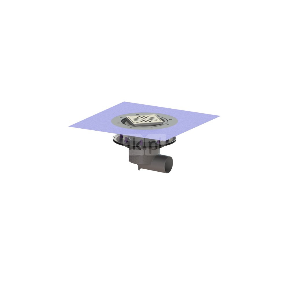 KESSEL Wpust obiek. Practicus doc.koł., dł. pokrywy 120 mm, króciec boczny, wielkość nominalna (DN) 70, syfonem w zestawie, typ pokrywy Kratka design, kratka design Kessel, uszczelnienie nasadzie przez załączona mata uszczelniająca do przyklejenia (zmu) wg DIN 18534