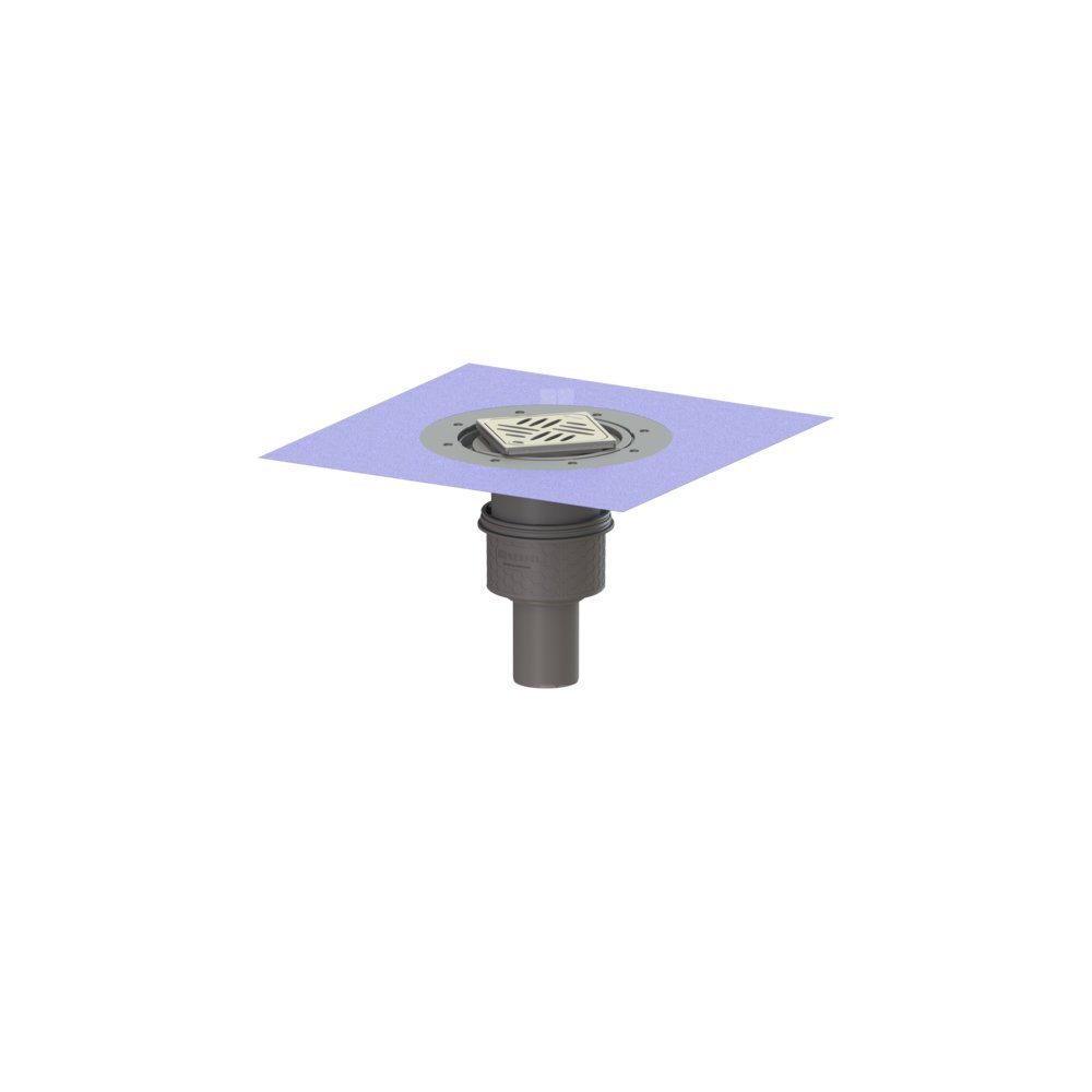 KESSEL Wpust podłog./strop. Practicus, dł. pokrywy 120 mm, typ uszczelnienia: uszczelnienie zespolone, króciec pionowy, wielkość nominalna (DN) 70, syfonem w zestawie, odwodnienie przez odpływ punktowy, typ pokrywy Kratka design, kratka design Kessel