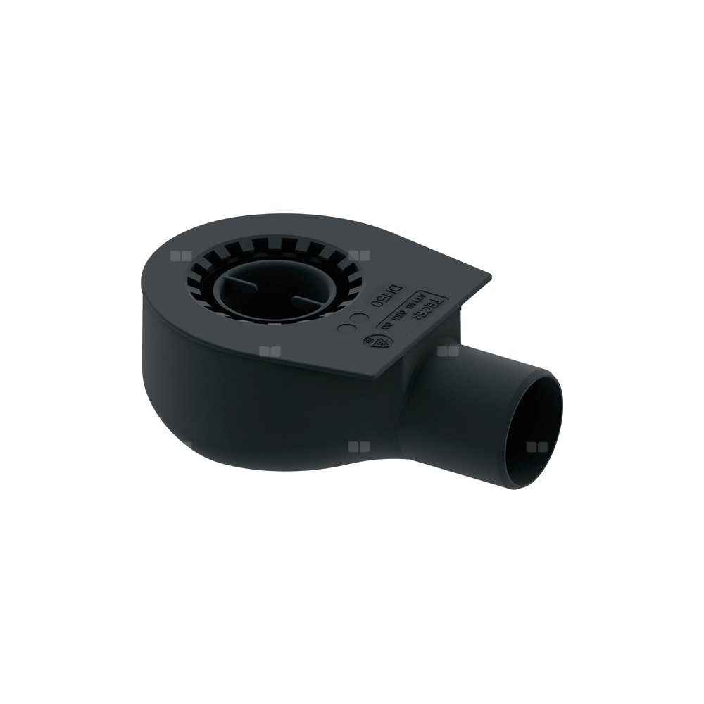 Kolano odpływowe do rynny prysznicowej TECEdrainline do montażu na korpusie rynny, odpływ obrotowy 360°, do przyłączenia bocznego do przewodu kanalizacyjnego DN 50, z wyjmowaną rurką spiętrzającą syfonu