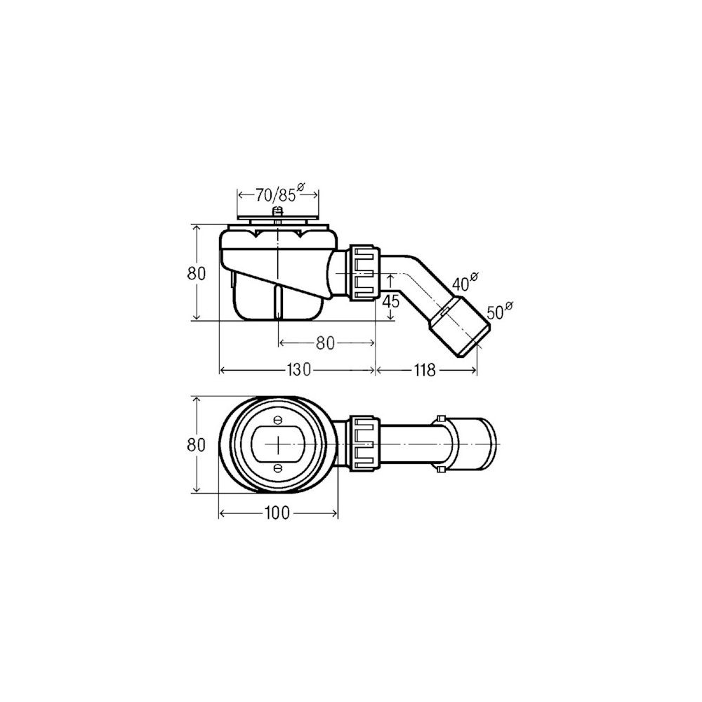 Domoplex-odpływ jednostka funkcyjna nr wzoru 6928.1 DN: 40/50 H: 80 do brodzików z otworem odpływowym fi 52