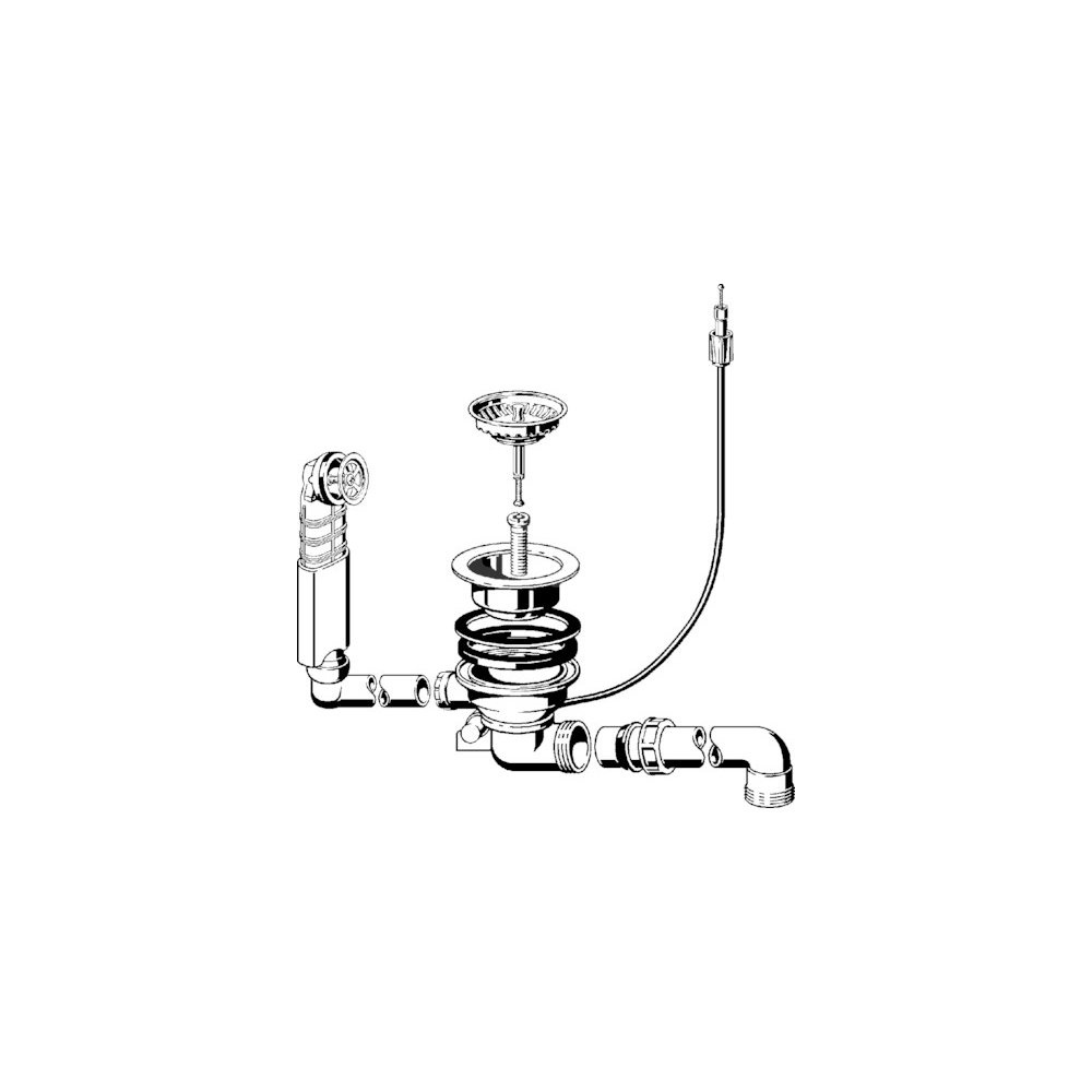 Komplet odpływowo-przelewowy nr wzoru 7139.162 G: 1½ fi: 114,5 do zlewozmywaków z otworem odpływowym fi 90