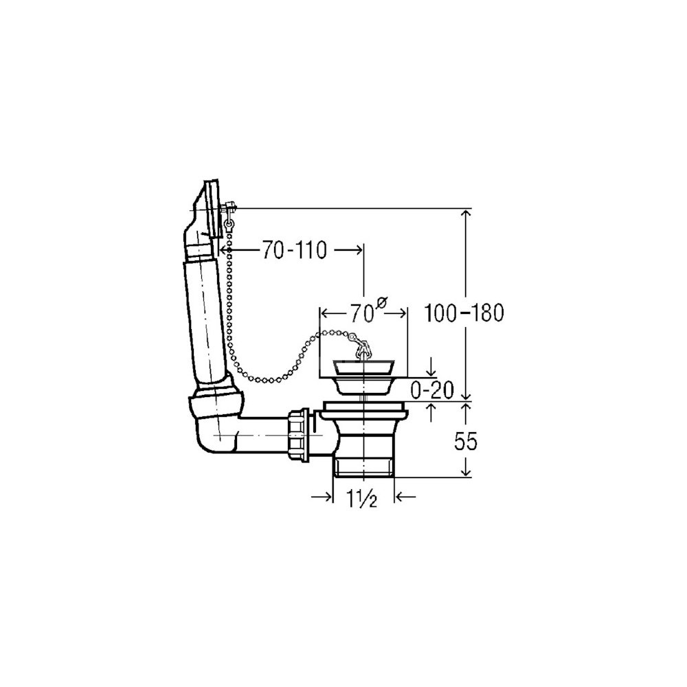 Komplet odpływowo-przelewowy przeznaczenie: zlewozmywak, tworzywo sztuczne, nr wzoru 7462.71 G: 1½ fi: 70 wysokość zabudowy dolnej części zaworu: 55