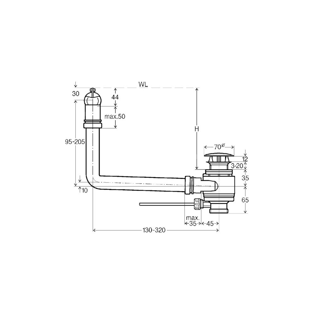 Komplet odpływowo-przelewowy zintegrowana funkcja przelewu przeznaczenie: umywalka bez przelewu, tworzywo sztuczne, nr wzoru 5420.1 G: 1¼ fi: 60