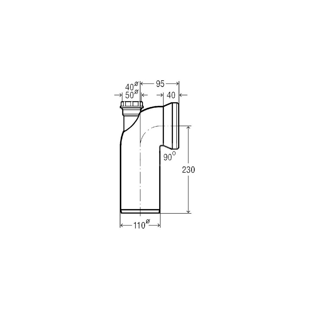 Łuk przyłączeniowy 90 st. przeznaczenie: WC, tworzywo sztuczne, nr wzoru 3811.1 DN1: 100 L: 230 DN2: 50 wykonanie: biały alpejski