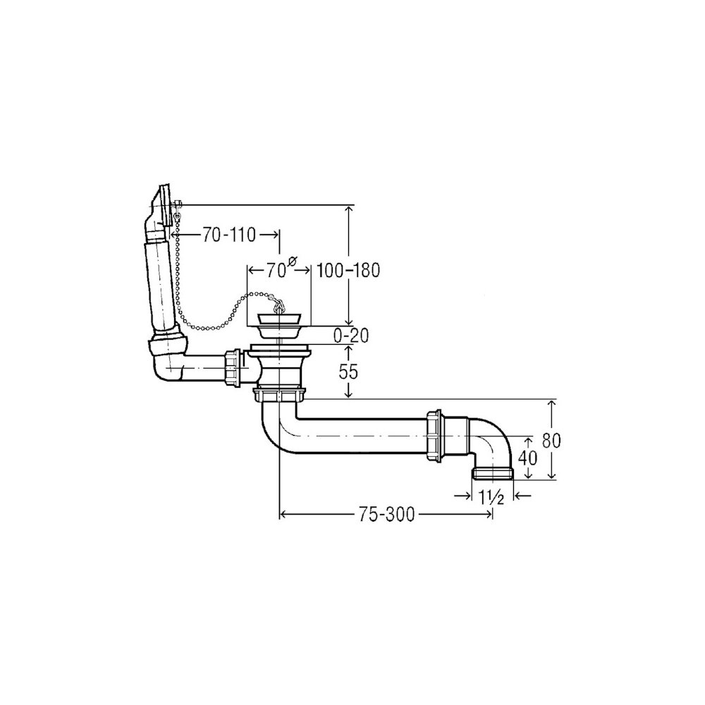 Pozyskiwacz przestrzeni-komplet odpływowo-przelewowy tworzywo sztuczne, nr wzoru 7860.71 G: 1½ fi: 70