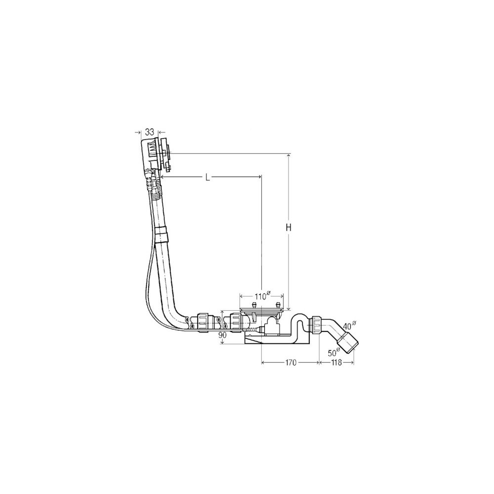 Rotaplex Trio-komplet odpływowo-przelewowy jednostka funkcyjna nr wzoru 6141.72 DN: 40/50 długość cięgna Bowdena: 1070 L: 150–680 H: 180–480 wanna o długości niestandardowej do wanien z otworem odpływowym fi 90