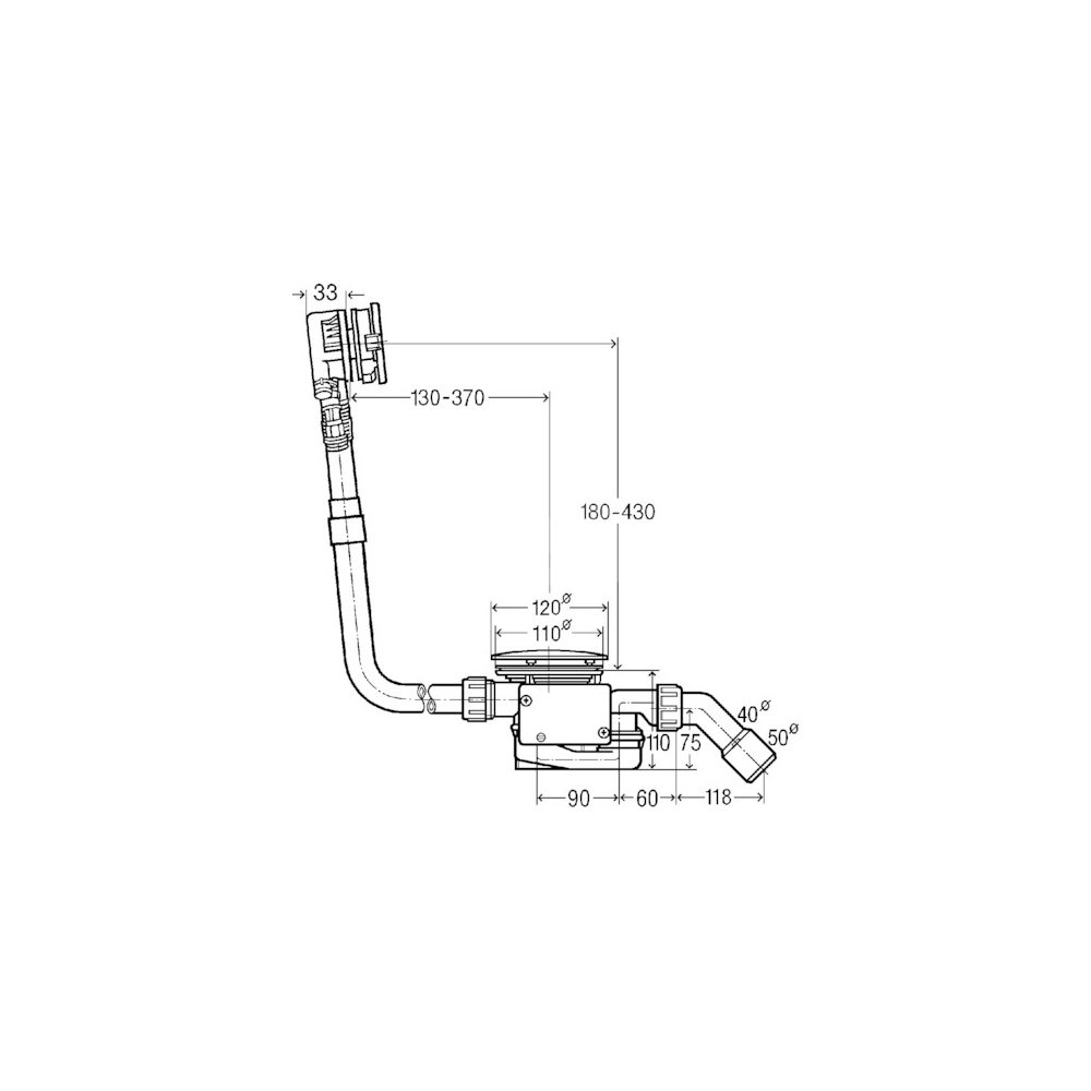 Rotaplex Trio-komplet odpływowo-przelewowy korek do zaworu z napędem, nr wzoru 6175.2 DN: 40/50 wanna z odpływem pośrodku do wanien z otworem odpływowym fi 90