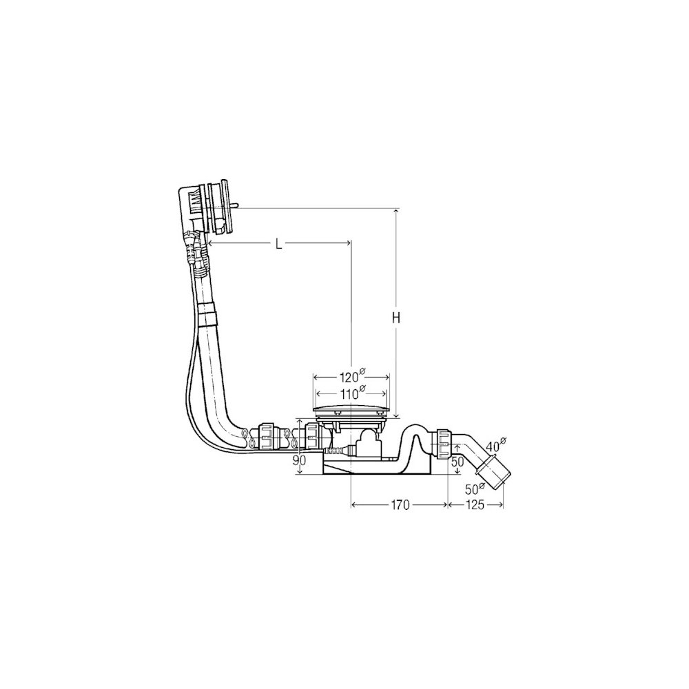 Rotaplex Trio-komplet odpływowo-przelewowy Visign RT3 nr wzoru 6141.71 DN: 40/50 długość cięgna Bowdena: 1070 L: 150–680 H: 180–480 wanna o długości niestandardowej do wanien z otworem odpływowym fi 90