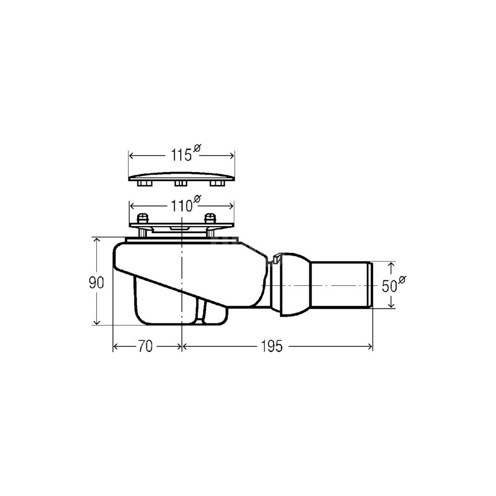 Tempoplex Plus-odpływ nr wzoru 6960 DN: 50 fi: 115 H: 90 do płytkich brodzików z otworem odpływowym fi 90
