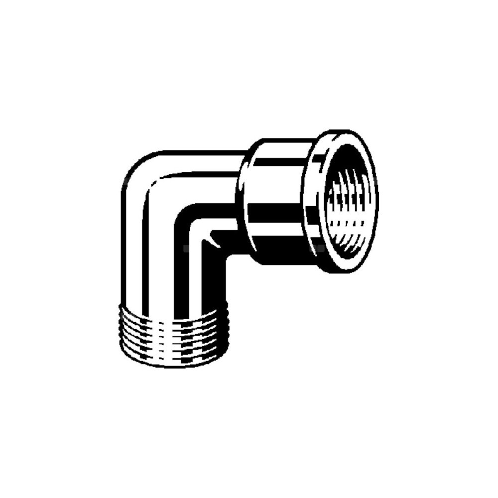 Kolanko 90°, mosiądz, gwint R, gw Rp, nr wzoru 1613, nr kat. 107 758, R: ¾ Rp: ¾ chromowane,
