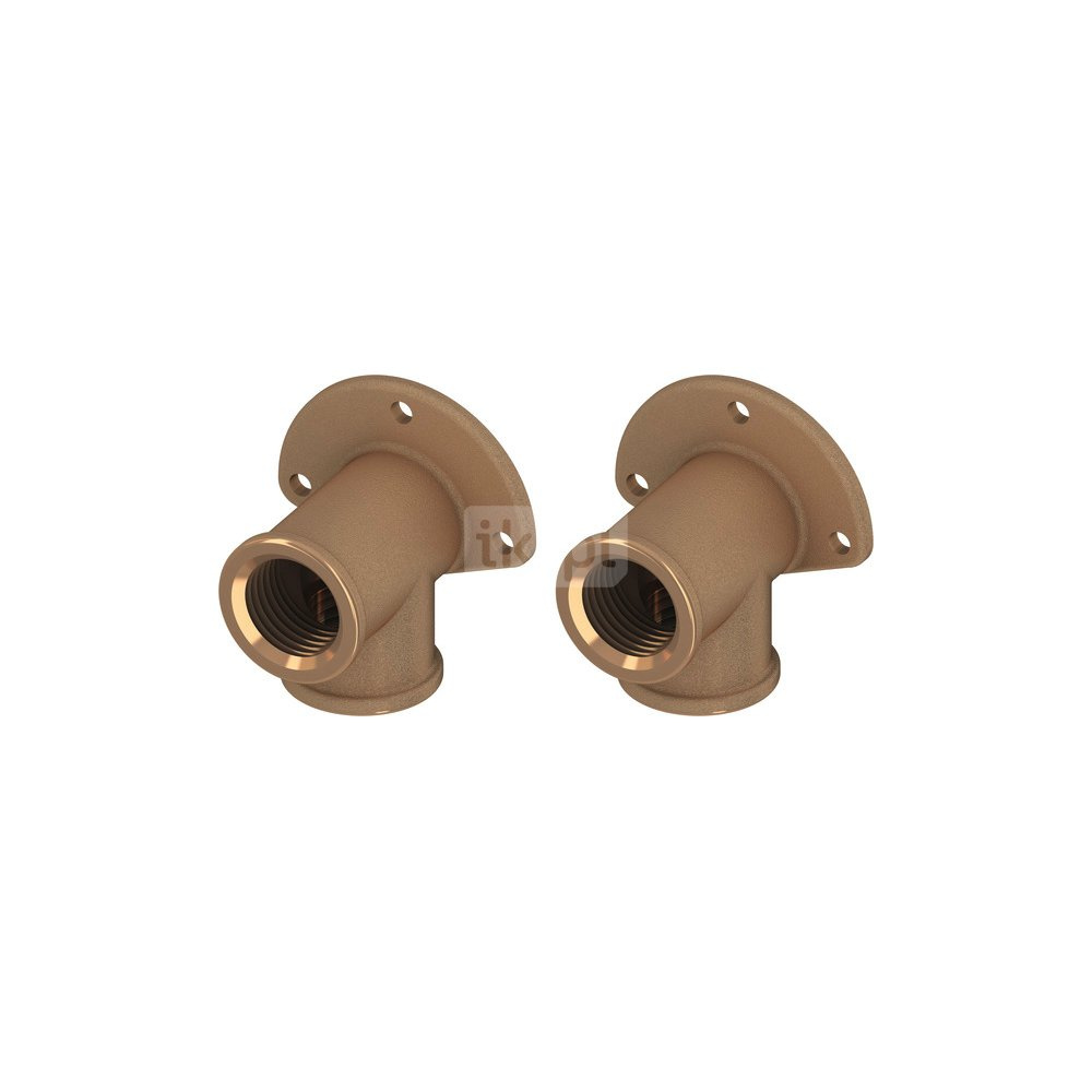 Dwa kolana naścienne z gwintem Rp 1/2" x 1/2". Do opcjonalnego połączenia z zestawem montażowym TECEone jako uniwersalne połączenie z konwencjonalnymi systemami rurociągów.