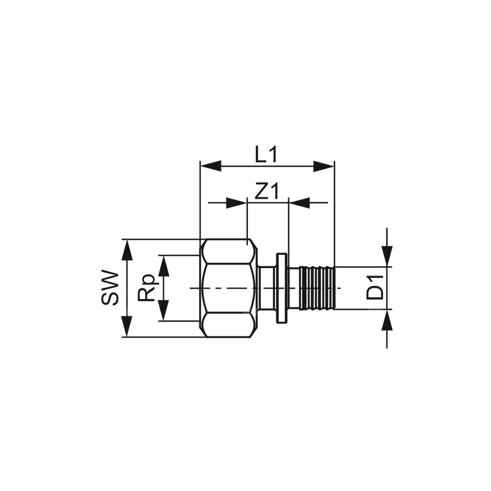 Mufa przejściowa z brązu do łączenia rur TECEflex ze złączkami gwintowanymi lub armaturą z gwintem zgodnie z normą EN 10226, za pomocą tulei zaciskowej, bez dodatkowych pierścieni uszczelniających typu O-ring. Złączka optymalizująca opór przepływu (wartość Zeta).