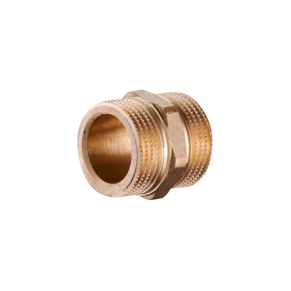 Mosiężna złączka wkrętna, równoprzelotowa, prosta (nypel). Produkt wykonany zgodnie z normą PN-EN 1254-4 / PN-EN 1254-4, posiada Atest higieniczny, deklarację zgodności.