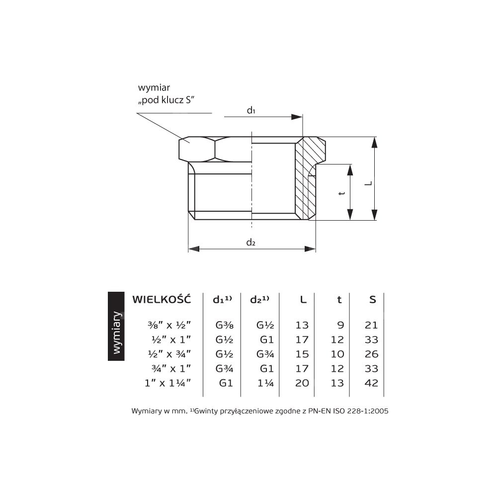 Znamionowa średnica wewnętrzna połączenia 1