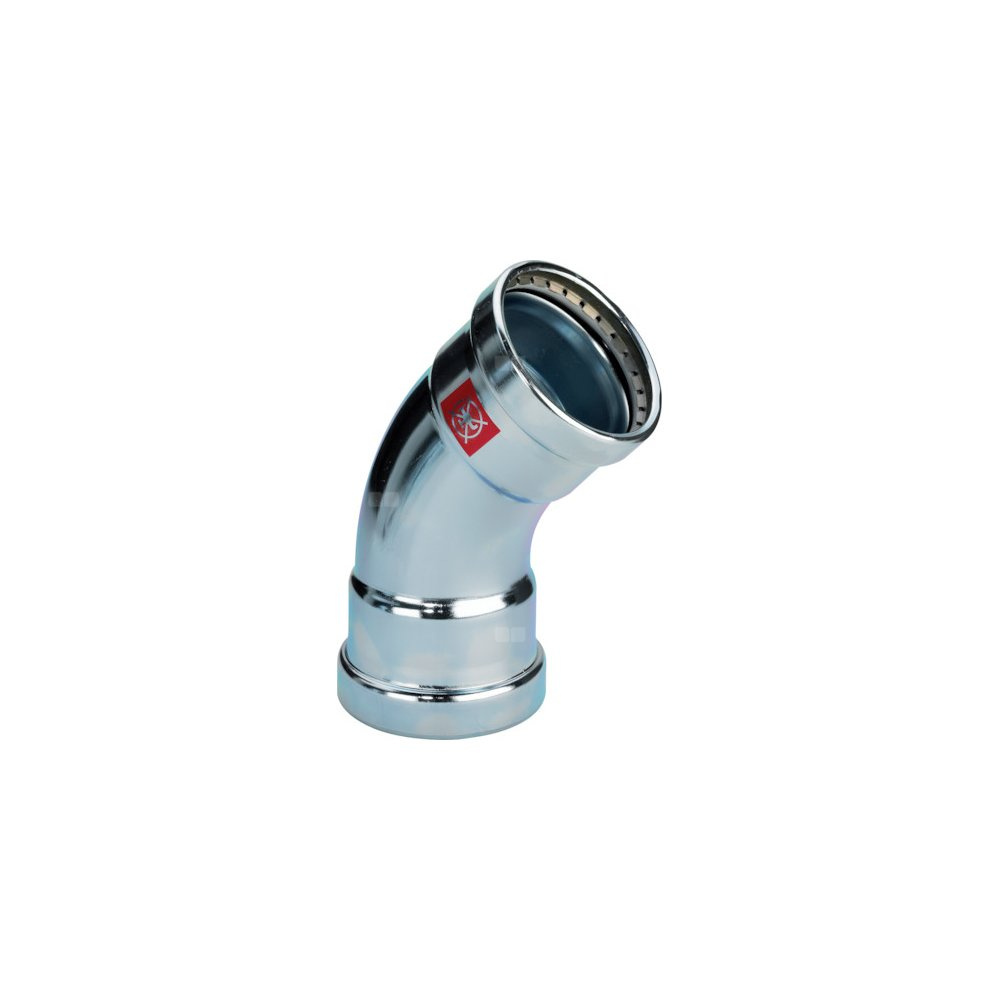 Łuk Prestabo 45' VIEGA 1126XL Jednoczęściowy, stal (Ocynk galwaniczny/elektrolityczny) / stal (ocynk), 88,9 mm (mz x mz) z uszczelką